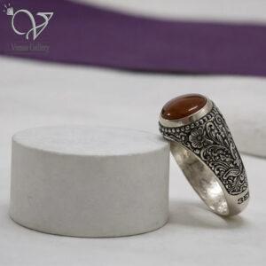 انگشتر نقره مردانه رکاب دستساز سنگ عقیق یمن کد 13290