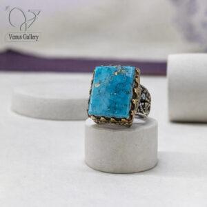 انگشتر نقره مردانه رکاب دستساز سنگ فیروزه نیشابور اصل کد 13311
