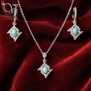 12,960,000 توماننیم ست نقره زنانه با سنگ فیروزه نیشابور کد 13138
