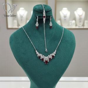 سرویس نقره جواهری عروس با نگین قرمز کد 13151
