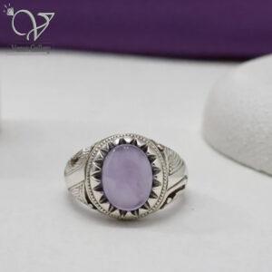 انگشتر نقره مردانه رکاب دستساز سنگ عقیق یاسی اصل کد 13265