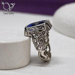 انگشتر نقره مردانه با سنگ طرح توپاز