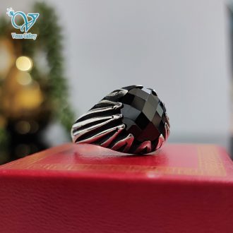 انگشتر نقره مردانه سنگ مشکی تراش خورده نگین بیضی کد 5493