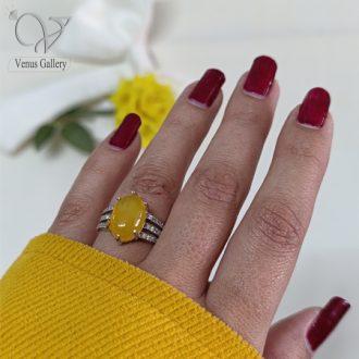 انگشتر نقره زنانه با سنگ عقیق زرد و دعای شرف الشمس کد9293
