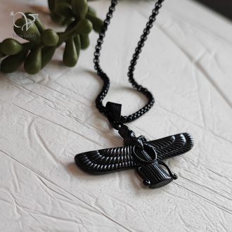 گردنبند فروهر مشکی دو رو تمام استیل کد 6482