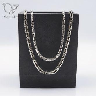 زنجیر نقره مردانه مدل کرال سیاه قلم ترکیه ای کد 7556