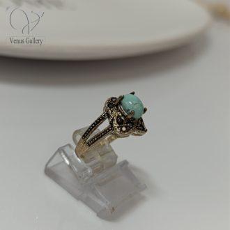 انگشتر نقره نگین مارکازیت با سنگ فیروزه نیشابور اصل کد 7878