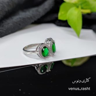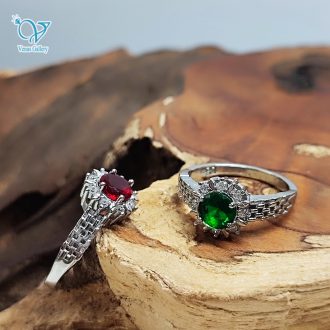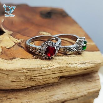 انگشتر نقره زنانه مدل رولکس با نگین سبز و قرمزکد 6365
