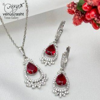 نیم ست نقره نگین قرمز زنانه طرح طلا کد 8916