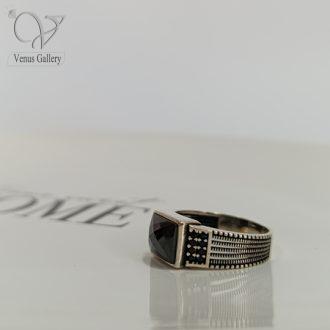 انگشتر نقره مردانه مارکازیت، اسپرت و سیاه قلم با سنگ مشکی کد4556