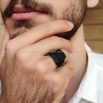 انگشتر نقره پسرانه با نگین های ریز اتمی کاملا مشکی کد 4577