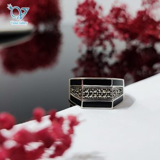 انگشتر نقره مردانه مارکازیت و سیاه قلم با سنگ اونیکس ترکیه ای کد 4525