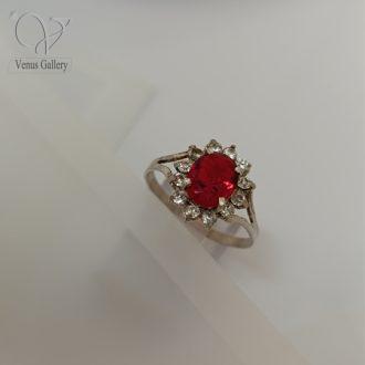 انگشتر نقره زنانه نگین قرمز طرح گل جواهری کد 7740