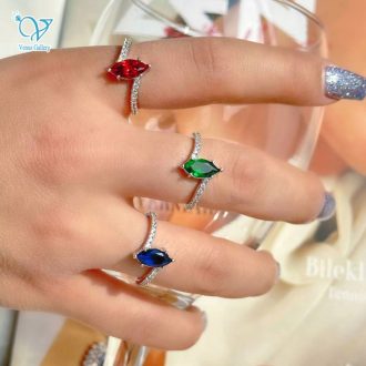 انگشتر نقره ظریف نگین رنگی لوزی