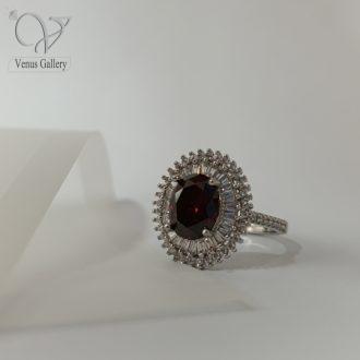 انگشتر نقره زنانه نگین قرمز کریستالی جواهری کد 7755