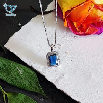 نیم ست نقره طرح اشک با کریستال آبی سواروسکی