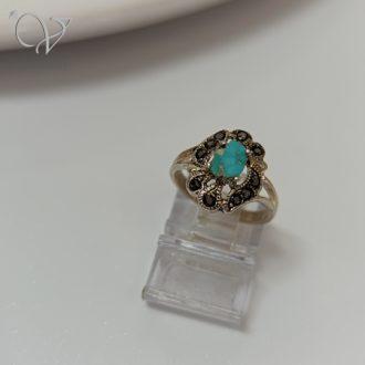انگشتر نقره زنانه نگین مارکازیت با سنگ اصل فیروزه نیشابور معدنی کد 7855