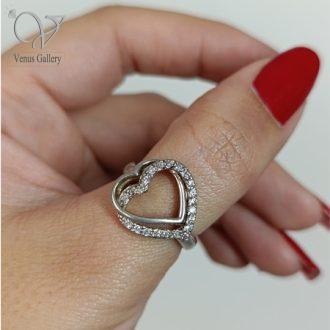 انگشتر نقره جواهری زنانه مدل قلب طرح طلا کد 7076