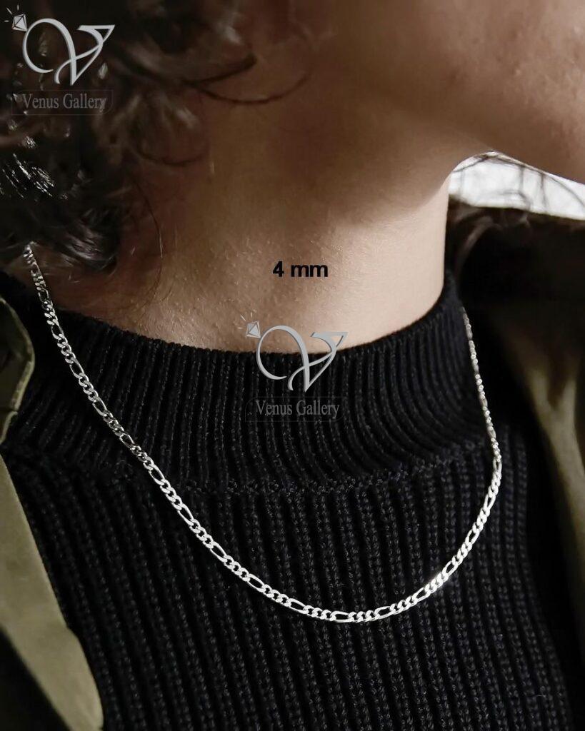 زنجیر نقره مردانه مدل فیگارو ایتالیایی کد 1092