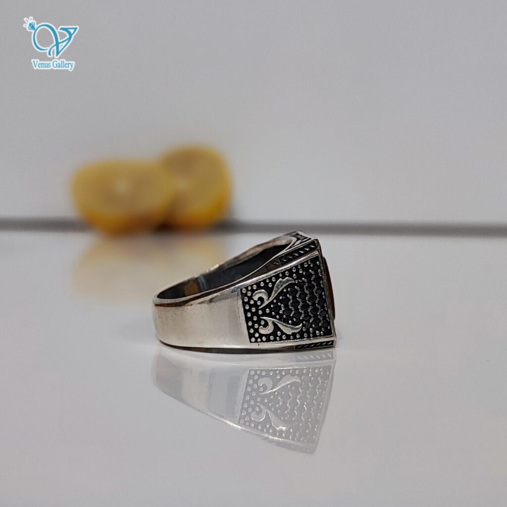 انگشتر نقره مردانه عقیق زرد حکاکی آیـه الکرسی