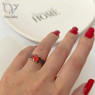 انگشتر زنانه و فوق زیبای نگین قرمز از نقره 925 عیار ساخته و با نگینهای مارکازیت مزین شده. این انگشترهای