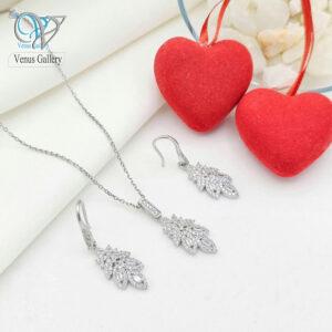 نیم ست نقره دخترانه طرح جواهر مدل گل کد 5034