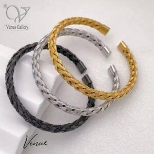 بنگل /دستبند استیل مردانه مدل بافت حصیری کد 9711