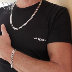 زنجیر و دستبند استیل مردانه مدل کارتیر رنگ نقره ای