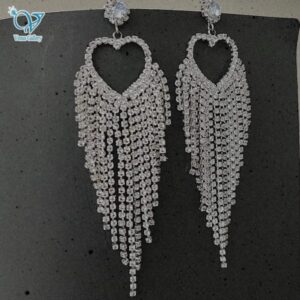 گوشواره پرنگین آویز طرح جواهر قلبی
