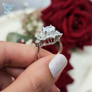 انگشتر تک نگین نقره جواهری طرح طلاسفید