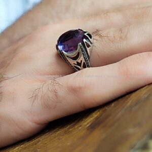 انگشتر نقره مردانه با سنگ آمیتیست ارغوانی کد 1020