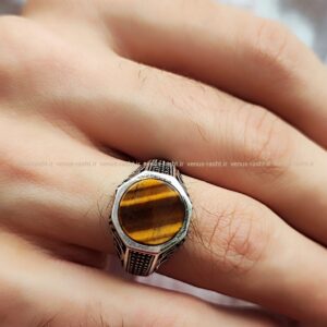 انگشتر نقره مردانه با سنگ چشم ببر کد 2351