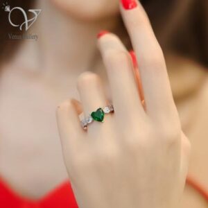 انگشتر نقره زنانه جواهری نگین سبز و نگین الماسی سفید کد 6307