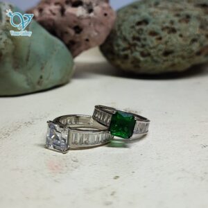 انگشتر نقره زنانه جواهری نگین سبز مربعی کد 6619