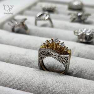 انگشتر نقره زنانه جواهری پر نگین طرح طلاسفید