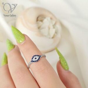 انگشتر نقره دخترانه مدل چشم ونظر طرح چشم کد 5974