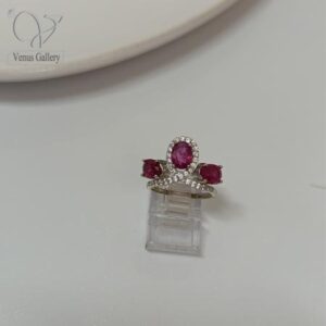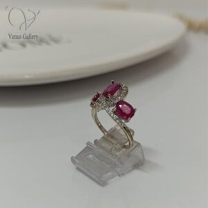 انگشتر نقره زنانه سه نگین جواهری رنگ قرمز