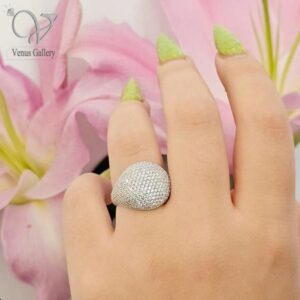 انگشتر نقره زنانه طرح جواهر پرنگین گرد کد 7369