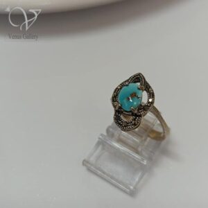 انگشتر نقره زنانه سیاه قلم نگین مارکازیت و سنگ فیروزه نیشابور کد 4833
