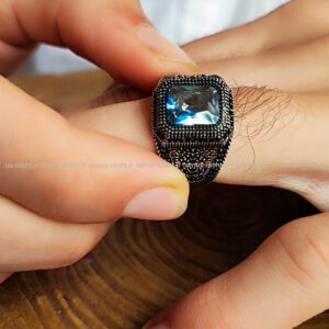 انگشتر نقره مردانه اسپرت با نگین کریستالی آبی