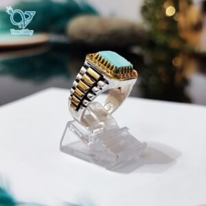 انگشتر نقره مردانه سنگ فیروزه نیشابور مدل رولکس