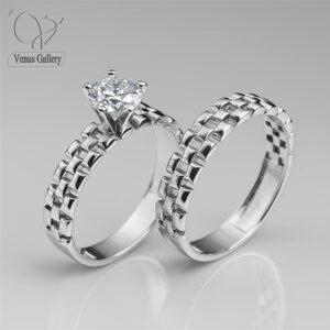 حلقه ست نقره عروس و داماد مدل رولکس Rolex – نقره ۹۲۵ اصل، طرح طلا سفید، ضد حساسیت کد 3189