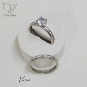 حلقه پشت حلقه نقره جواهری طرح طلا سفید کد 10187