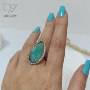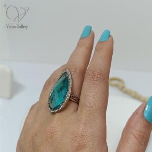 انگشتر نقره دخترانه نگین آبی مدل اشکی کد7893