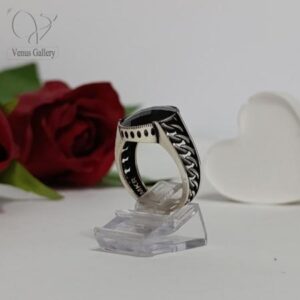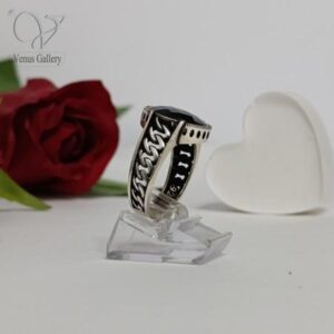 انگشتر نقره مردانه مدل کارتیر سنگ اونیکس چند وجهی بیضی کد8590