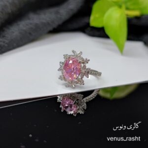 انگشتر نقره زنانه طرح جواهر با سنگ صورتی کد 1219