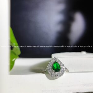 انگشتر نقره جواهری نگین سبز اشکی