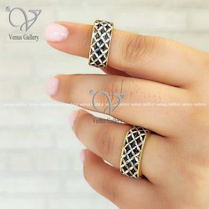 انگشتر نقره زنانه سیاه قلم مربعی طلایی