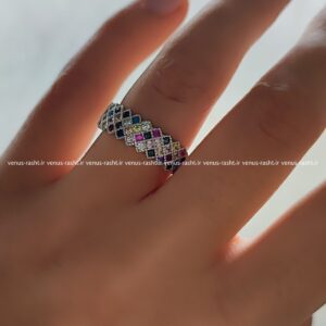 انگشتر نقره زنانه مدل پرنس نگین رنگی