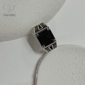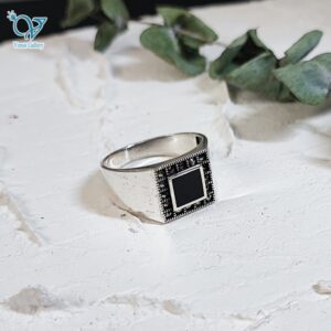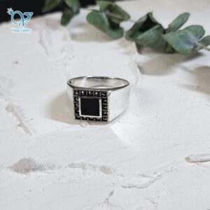 انگشتر نقره مردانه ترک و سیاه قلم نگین مارکازیت مدل ورساچه8418